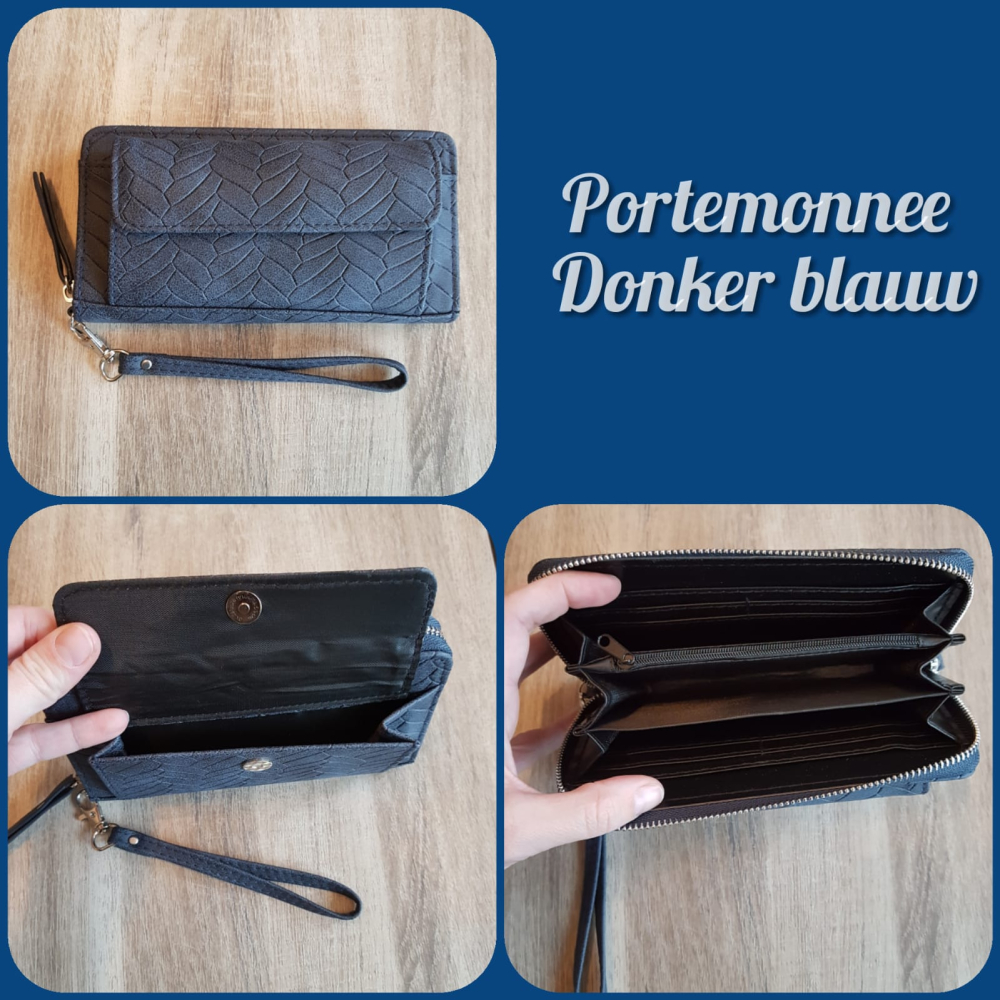 Mooie grote portemonnee in het donker blauw met voorvakje en met afneembare polsband!